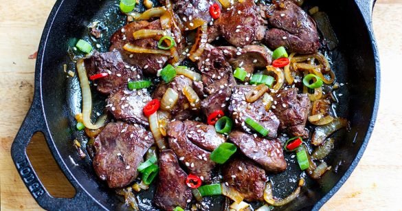 Even if you’re not a fan of organ meats, I bet you would enjoy these healthy and delicious Asian-style chicken livers and onions with sticky honey soy and garlic sauce. Serve over cauliflower rice or stir-fried vegetables for a low-carb, paleo-friendly meal or with regular rice or noodles.