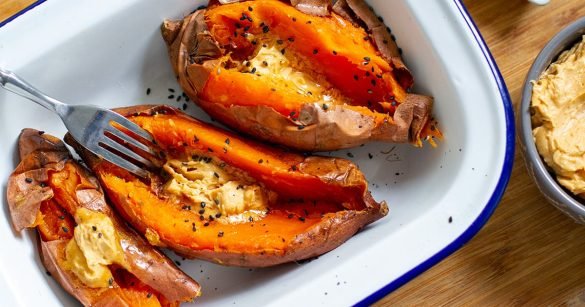In today’s recipe, you will learn how to bake whole sweet potatoes and how to make delicious miso butter that will become your new favourite condiment.