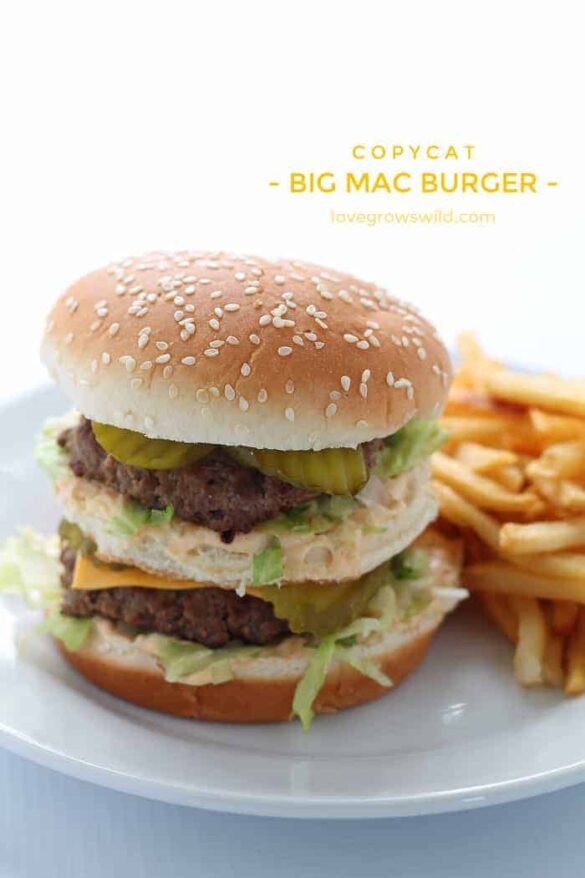 Did you guess it?? Today I’m sharing an epic recipe for a Big Mac Burger! I don’t know about you, but even though I try to eat healthy most of the time, I still love to indulge in a big, stacked Big Mac every now and again, and I love the idea of re-creating that famous burger at home. It took a couple tries to get the special sauce juuuuuust right, but I think I’ve got it down, and I think you’re going to love it!
