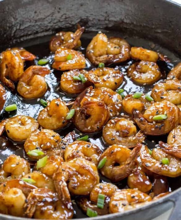 Hoisin Shrimp in a skillet.