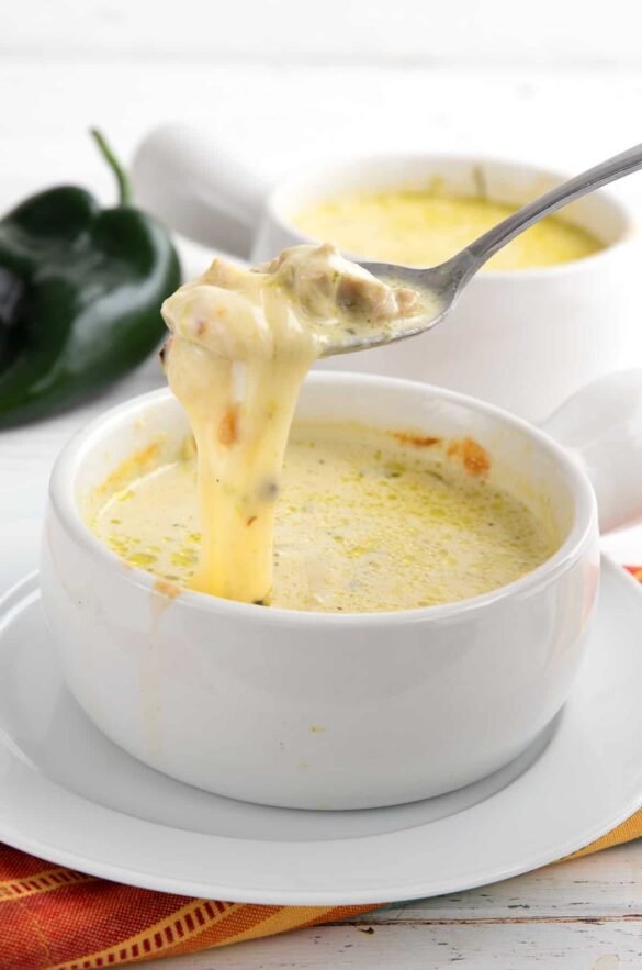 Creamy rich soup with roasted poblano peppers, chicken, and plenty of cheddar cheese. It’s a must make low carb soup recipe!