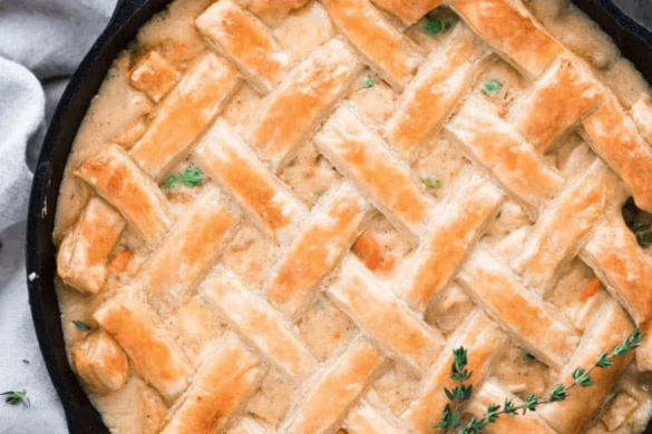 One Skillet Chicken Pot Pie is a comforting family favorite classic made easy by using only one skillet and topping with a delicious flaky puff pastry.