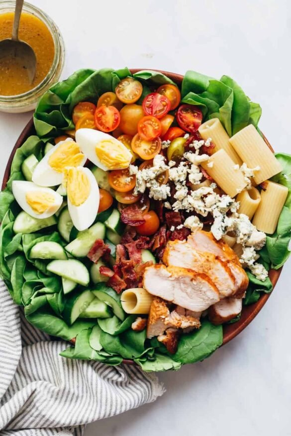 This pasta cobb salad is so perfect when you want salad for dinner. It won’t leave you feeling empty and still hungry. It’s such an American staple and adding pasta to this crowd favourite makes it super filling.