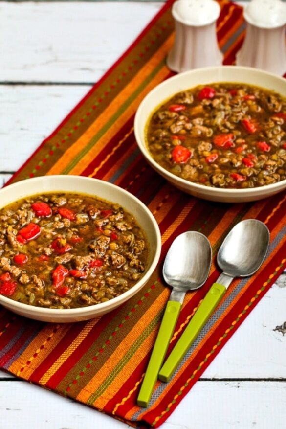 This delicious lentil soup was first posted in 2007 and I’ve enjoyed it so many times since then. Photos were updated January 2015, and the recipe was last updated with more information and a lower-carb version in 2022.