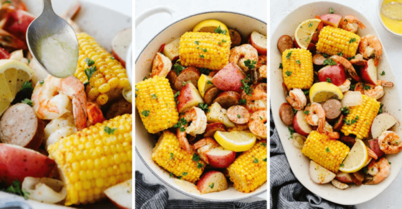 Oh boy! If you haven’t cooked up a shrimp boil before then, you are in for some mind-blowing food! A shrimp boil is when you take some sausage, corn, potatoes, and ultimately shrimp and boil them all together in a large pot. It creates a divine flavor! Plus, because all ingredients are cooked together, they are packed to the brim with delicious seasoning. Old bay seasoning is the star of the show! It enhances all of the flavors of the ingredients. Then, you add in some freshly squeezed lemon wedges to top it off! That brings a bright flavor to the dish.