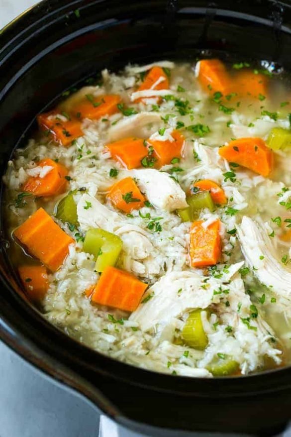 Home Chicken Slow Cooker Chicken and Rice Soup